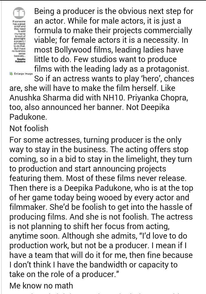 Deepika says she wld love to support great scripts& do production work, but doesn't hv business sense 2 be a producer
